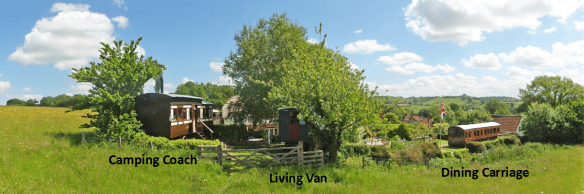 Welcome to High Cross Camping Coach: a truly unique glamping holiday experience. A delightful Victorian railway carriage converted into fully self-contained holiday accommodation for two, with an adjacent Living Van providing two additional beds.
